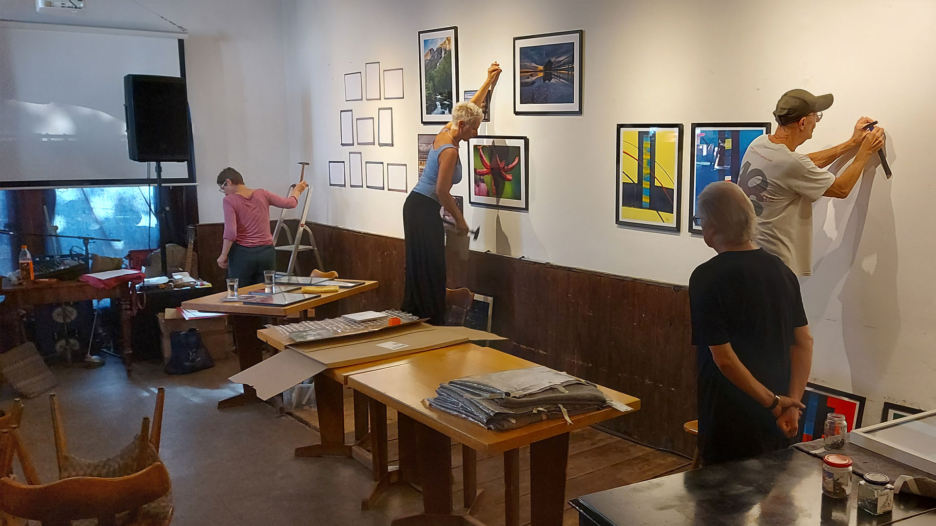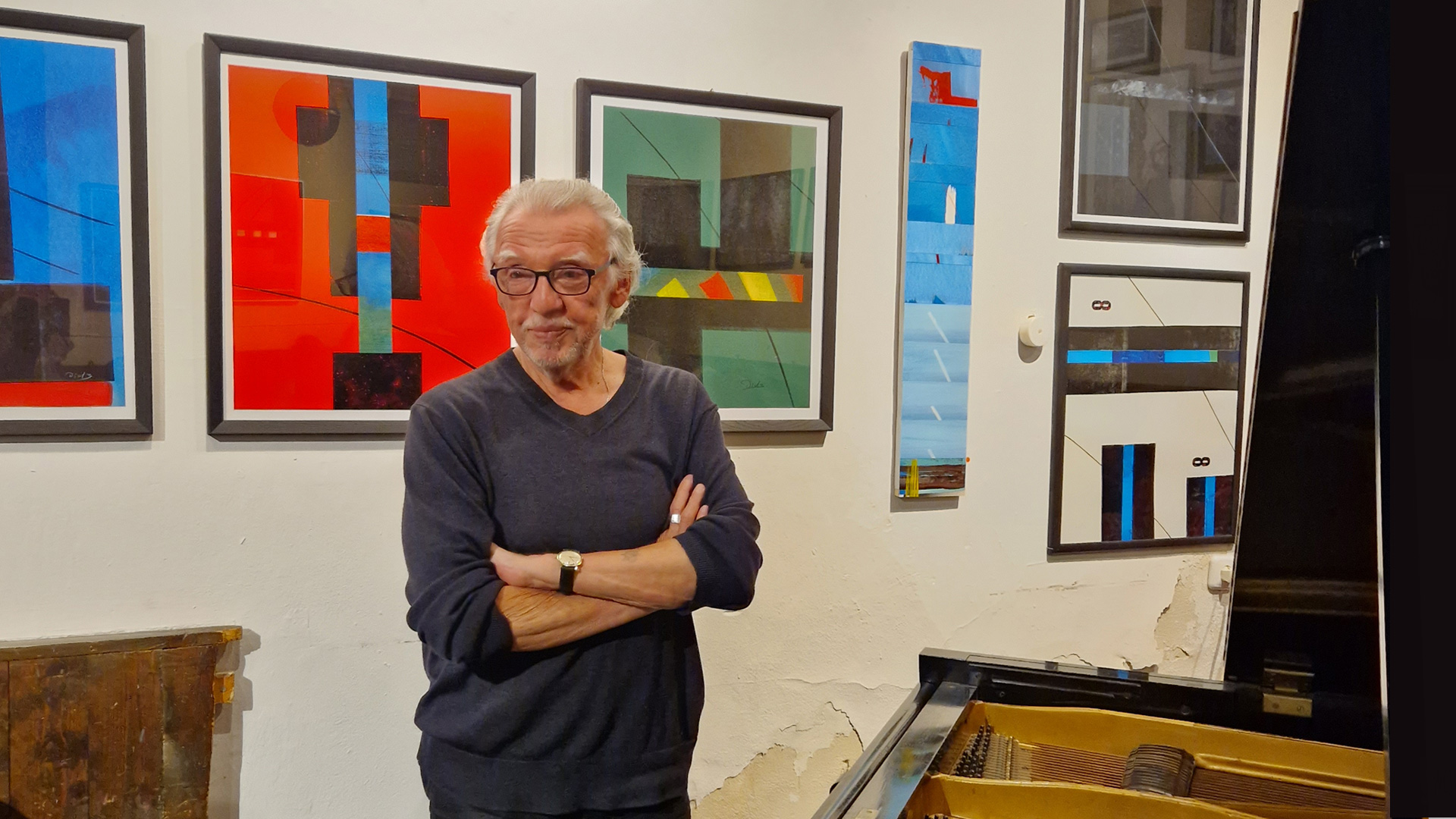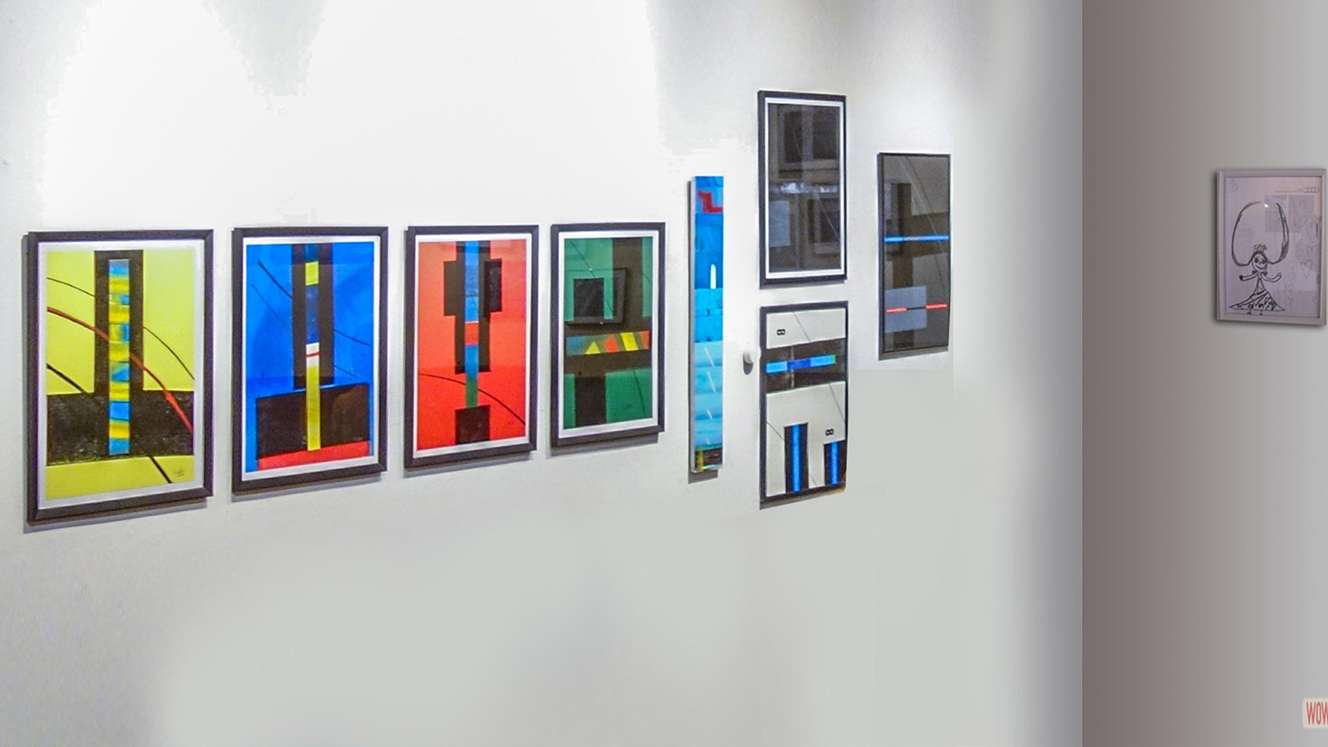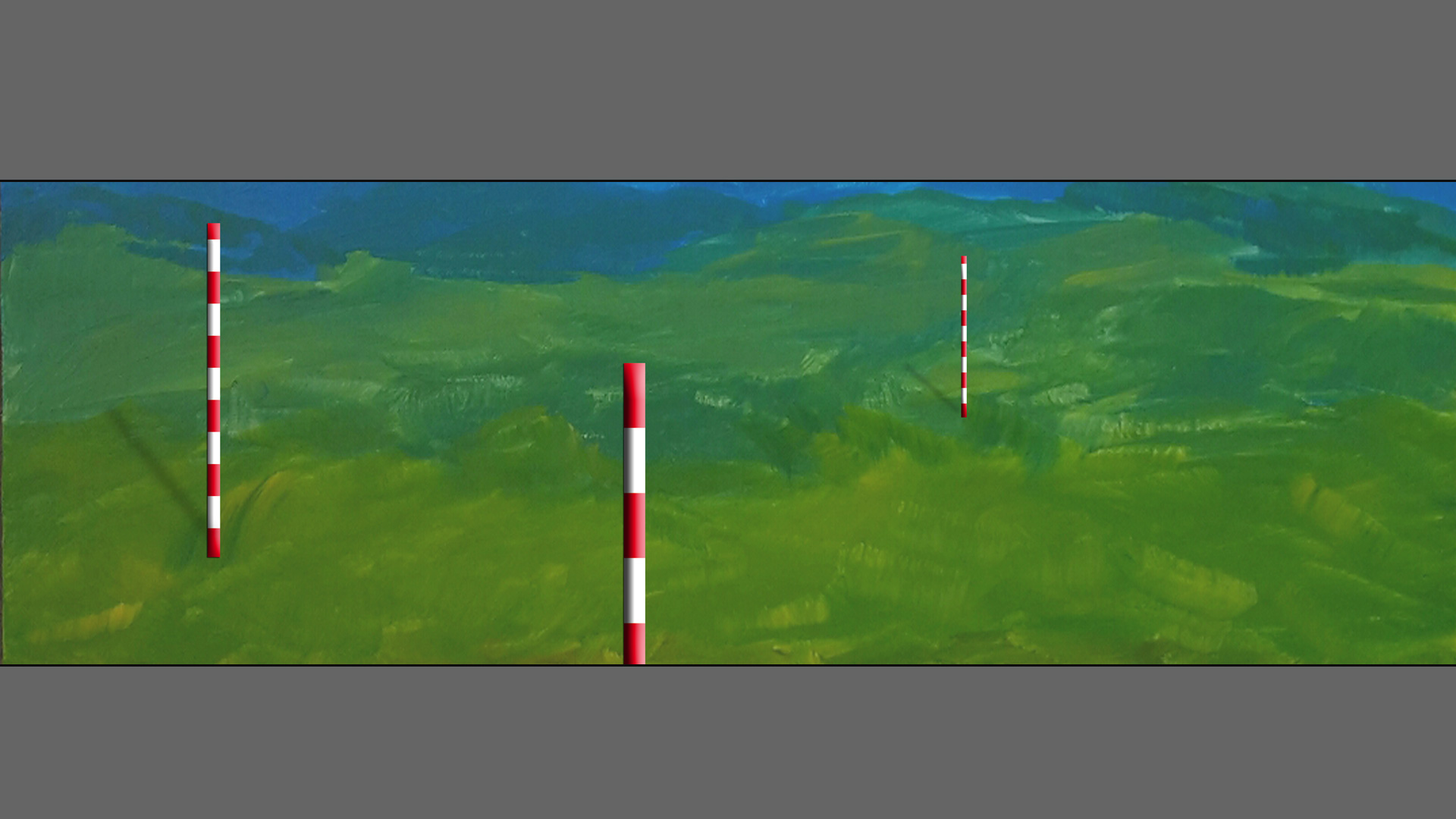 Der erste Strich oft eine Horizontale, drei Linien vertikal, radikal.Irgendwo ein Kreis oder Quadrat. Oben durchkreuzt oder Farbe, unten eine Figur oder nicht.So entstehen meine Landschaften, oder nicht. Oft mit Zeigefinger und immer Spaß dabei.